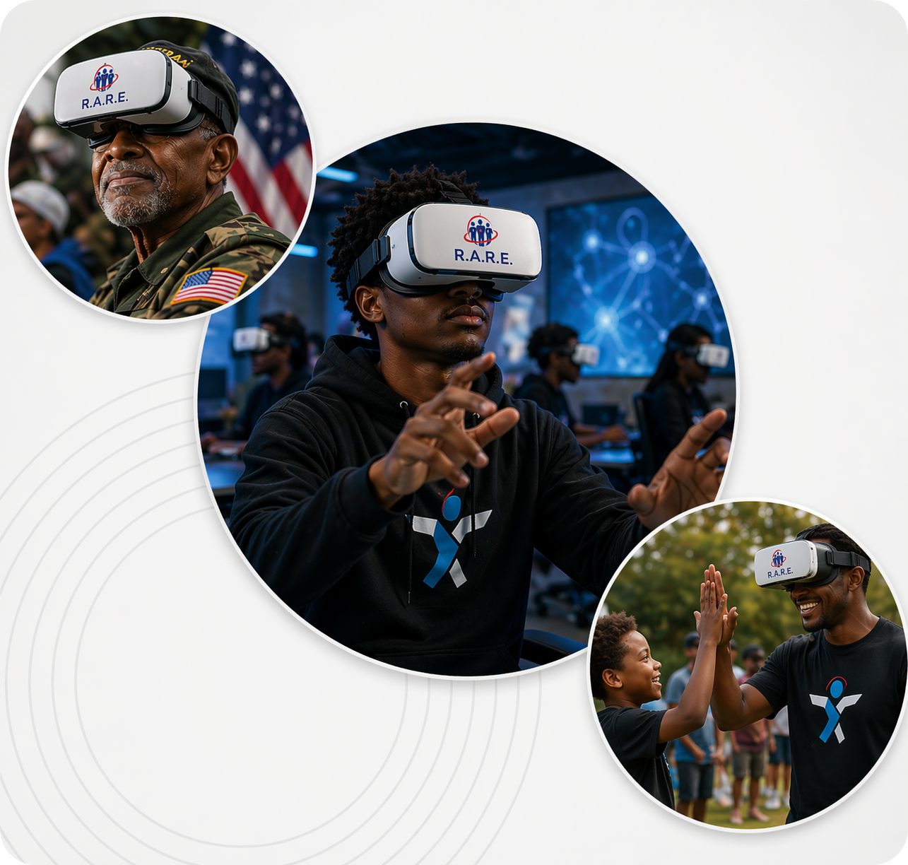 The R.A.R.E. Foundation is dedicated to equipping Veterans, Returning Citizens, and Students with the tools needed to thrive in today’s AI-driven economy. Through the KreditVerse platform, we deliver immersive VR-based career training, certification pathways, and real-world workforce preparation.